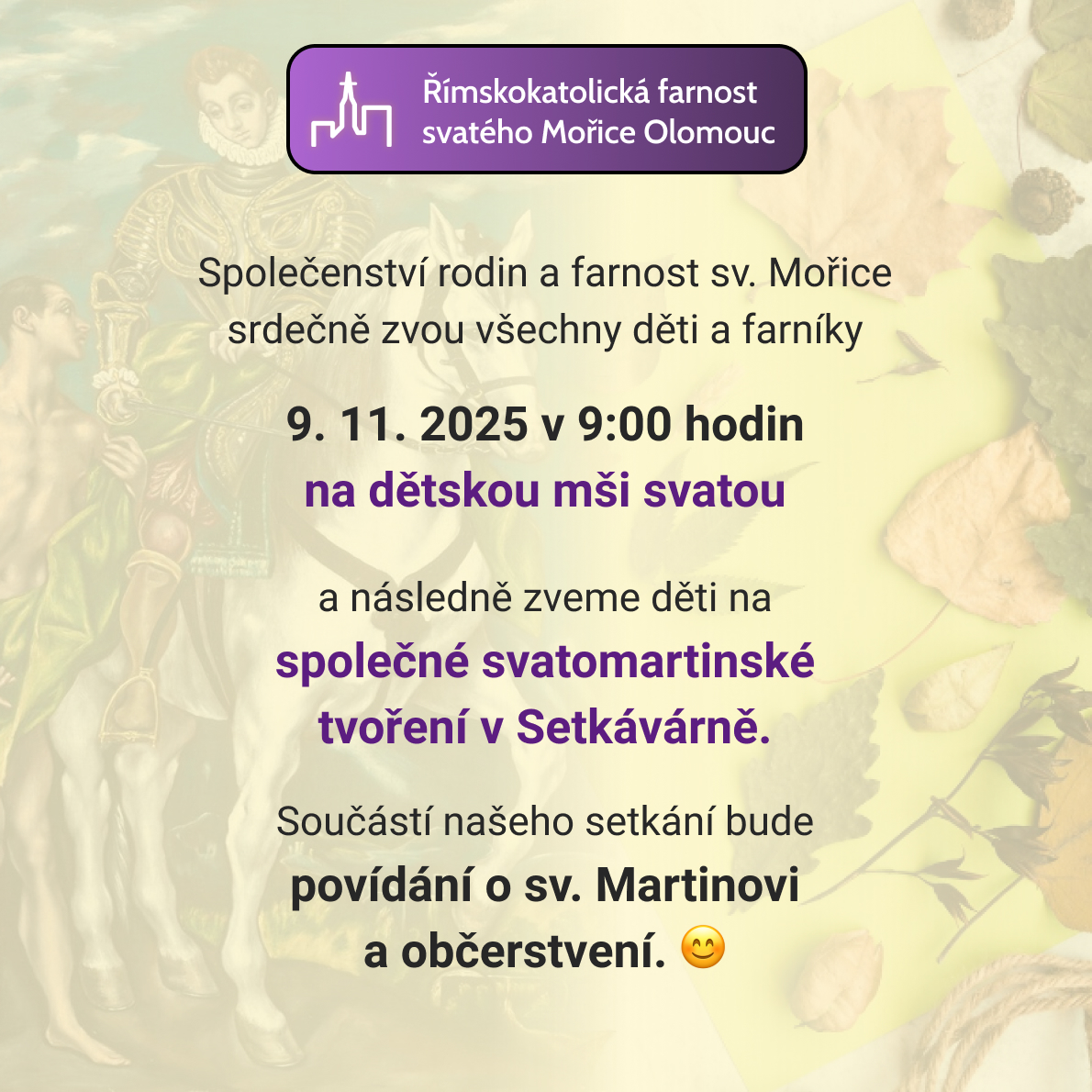 | 9:00 | MŠE SVATÁ, po mši Setkávárna |